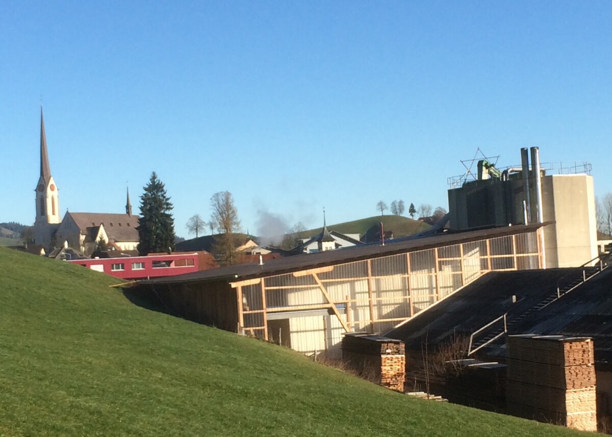 Bau einer Schnitzellagerhalle mit einem Fassungsvermögen von rund 1000 Sm3 mit integriertem Trocknungsboden. Auf dem Dach wird eine Photovoltaikanlage installiert.